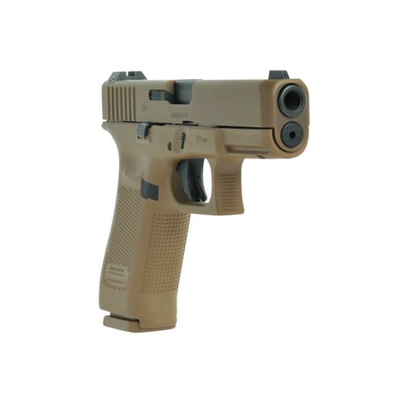 A G19X Gen5 vem na cor coiote com o primeiro slide colorido de fábrica, com um revestimento aprimorado em slide nPVD para evitar corrosão.