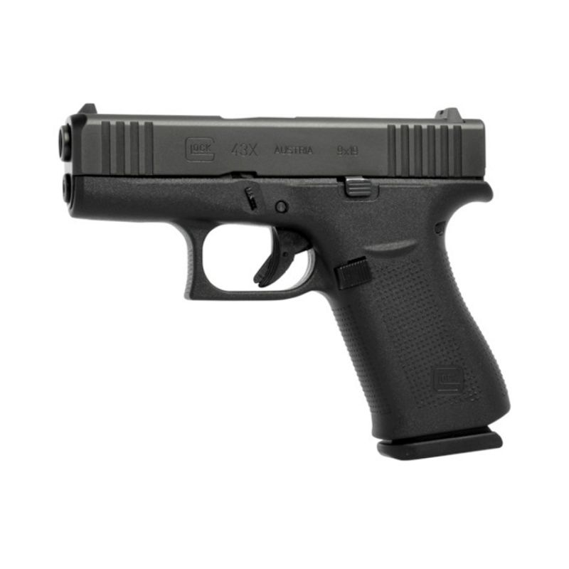 Com câmara de 9 mm, a G43X possui um quadro Slimline compacto com um slide preto com acabamento nDLC. A capacidade 10 tiros a torna ideal para porte velado.